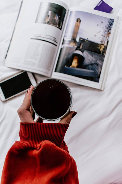 Take a break from scrolling through social media. Disconnect, grab a cup of coffee, and snuggle in with that mag that you’ve been meaning to read.